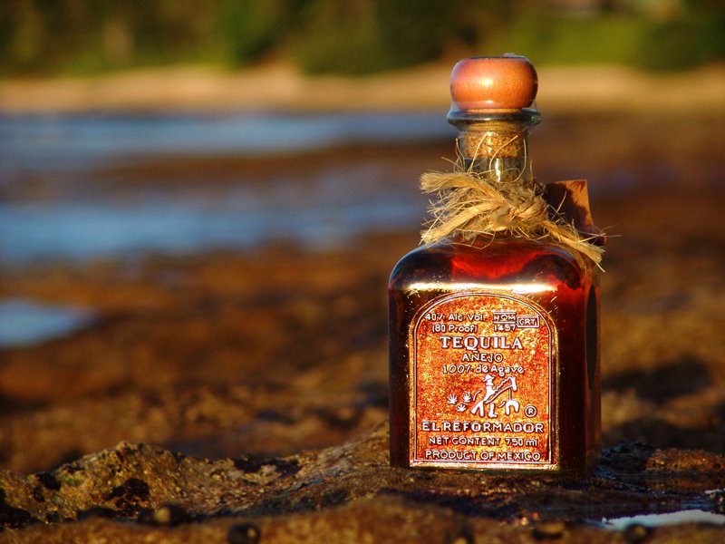 Pictures of bottles of my favorite spirit with interesting backgrounds.